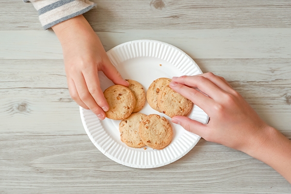 Don't try to eat all of the cookies. Limit your intake by eating slowly. Enjoy it. This method aids in the control of binge eating. Eating slowly helps you realize when you are full and when you have had enough to eat.