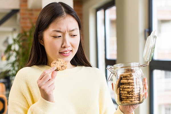 Avoid eating those cookies right away from the jar. Take enough and place it on a small plate according to the amount you want to eat.