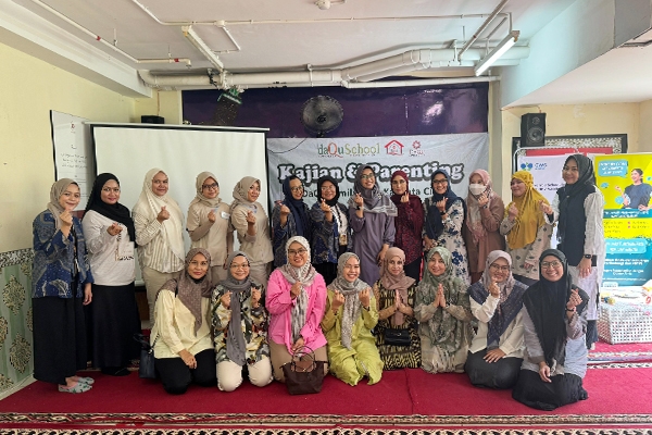 A warm atmosphere filled the health talk event held by GWS Medika in collaboration with the Sekolah Daarul Quran at the Kalibata City Apartment. The prayer room area immediately turned into a seminar room. There is a sofa for the speaker, and the participants sit neatly on the carpet that has been provided.