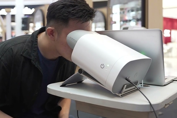 In the form of a scanning camera, you only need to position both eyes according to the device's order. The artificial intelligence system will scan your retina and take a photo. The system will analyze photo shoot outcomes and provide you with a description.