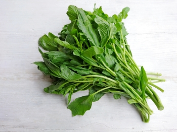 This veggie is also known as rainbow radish or sea kale because of its colorful stems. The leaves are dark and earthy in flavor, but the stems are sweet.