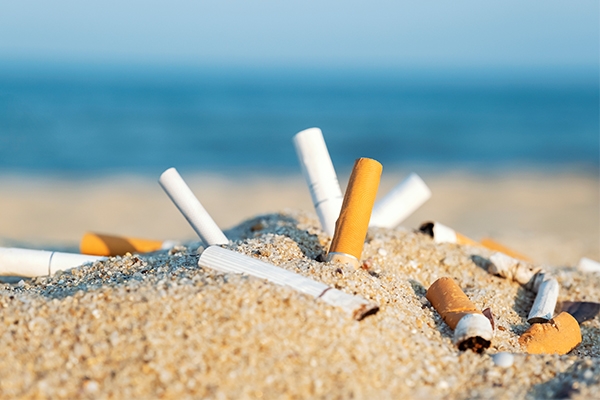 Setiap tahun, di seluruh dunia, sekitar enam triliun batang rokok dikonsumsi oleh satu miliar perokok. Puntung rokok merupakan sampah plastik yang paling banyak ditemukan di pantai. Rokok melepaskan mikroplastik, logam berat, bahan kimia lain yang berdampak pada kesehatan dan layanan ekosistem.