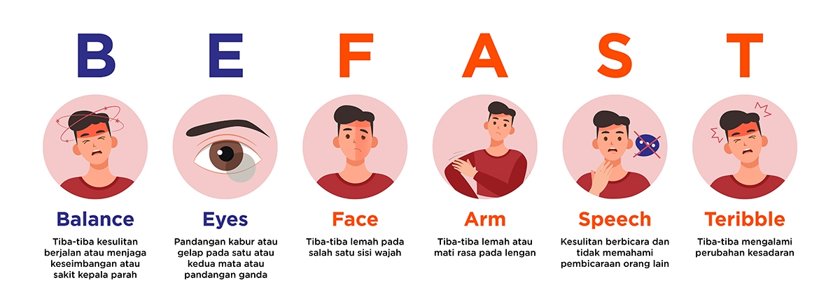 Gejala stroke pada usia muda mirip dengan gejala stroke pada umumnya. Untuk mengenali stroke, ingat B.E.F.A.S.T.