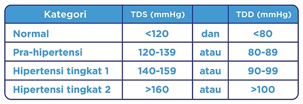 Berikut kategori tekanan darah. Anda dinyatakan memiliki penyakit darah tinggi jika masuk dalam kategori hipertensi tingkat 1 atau 2.