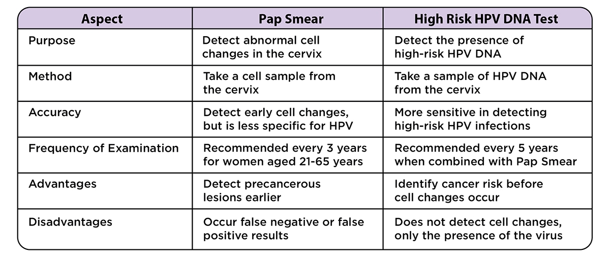 Regular sexual health screening is critical for early detecting the risk of cervical cancer. There are two primary procedures: the Pap smear and the HPV DNA high-risk test.