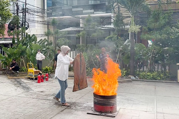 Sebelum para peserta mempraktikkan teknik pemadaman menggunakan APAR dan karung basah, Tika Astari, instruktur K3 tersertifikasi dari GWS Medika, menjelaskan cara memadamkan api dan teknik pemadaman. Tim safety gedung juga menambahkan teknik memadamkan api menggunakan karung basah.