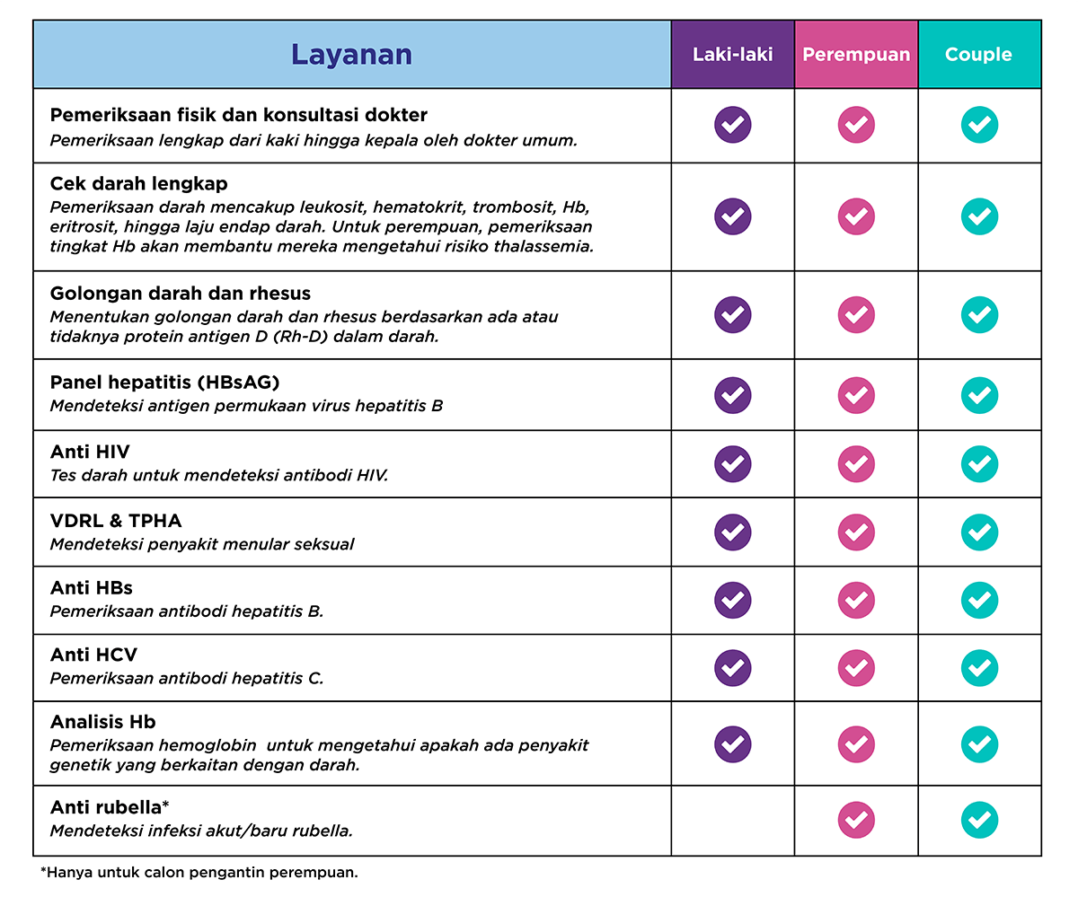 Lalu, apa saja layanan yang didapat dari pemeriksaan kesehatan pranikah?
